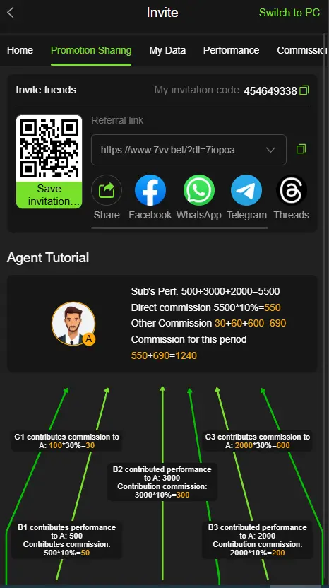 The 7vv bet download rewards dedicated gamers who bring in new players or act as game advertising members. By becoming an agent, you can earn a passive salary based on the number of new gamers you bring to the gaming actions. This system provides an amazing opportunity for you to build a community and earn passive income.